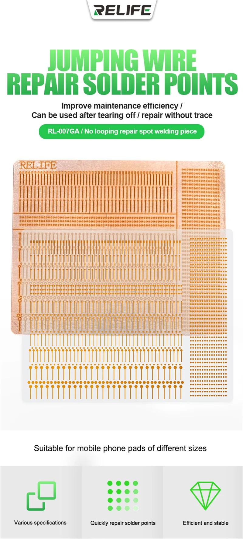 RELIFE RL-007GA Jump Wire Repair Solder Points for Mobile Phone Pads Repair Flying Line No Looping Repair Spot Welding Piece